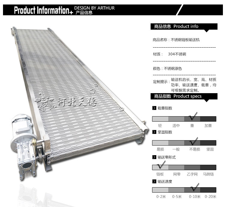 應(yīng)用行業(yè)有:食品加工、速凍加工、設(shè)備組裝、金屬件輸送、機(jī)床排屑,況且在這些行業(yè)中對鏈板輸送機(jī)的使用型號也不一樣。平頂鏈板式輸送機(jī)適合高速輕型產(chǎn)品輸送機(jī);折彎鏈板式輸送機(jī)適合重型、體積大產(chǎn)品輸送;合頁鏈板式輸送機(jī)適合稍重、細(xì)小產(chǎn)品輸送。大家在購買時一定注意要根據(jù)自己產(chǎn)品來選型。