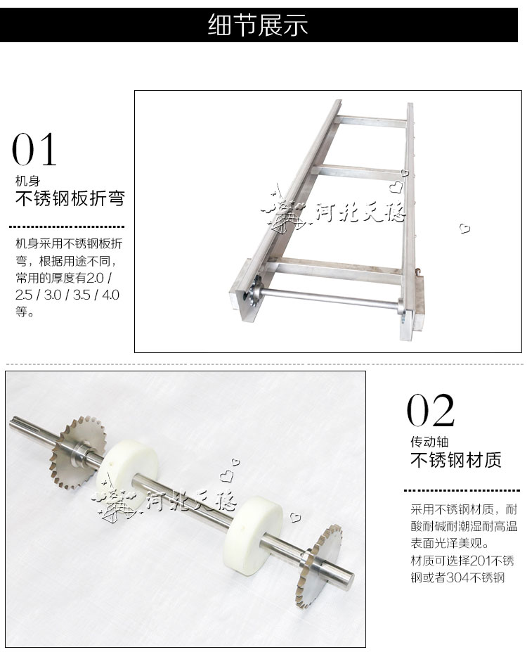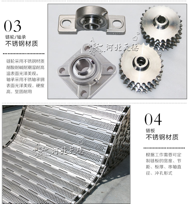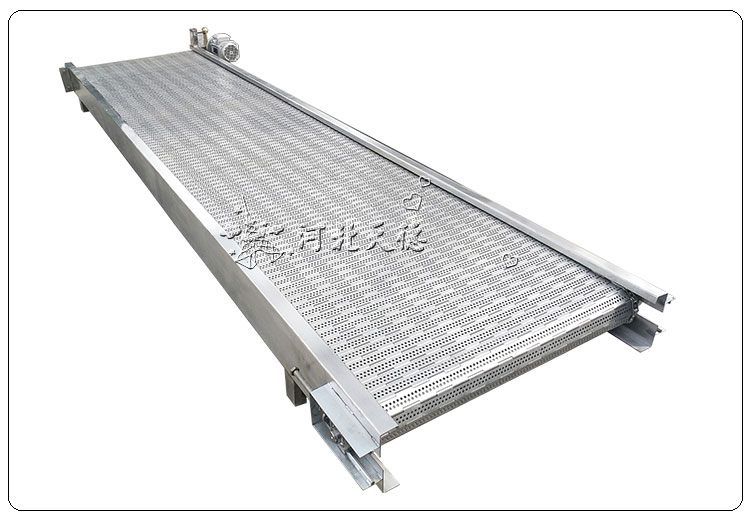 作為合頁鏈板輸送機(jī)使用的大市場就是速凍領(lǐng)域,速凍領(lǐng)域中果蔬速凍可以說是多的使用行業(yè)。果蔬速凍所使用的鏈板式輸送機(jī)規(guī)格型號比較常規(guī),全部304或316不銹鋼結(jié)構(gòu);節(jié)距31.75mm或38.1mm;厚度1mm~1.5mm;寬度300mm-900mm;一般沖孔3mm~4mm,這種規(guī)格的鏈板輸送機(jī)適應(yīng)果蔬的輸送和速凍作業(yè)。